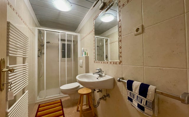 Von unserer 75 m² großen Wohnung aus genießen Sie einen atemberaubenden Blick auf das Dorf und die umliegenden Berge. Die Wohnung befindet sich im Erdgeschoss und verfügt über vier Zimmer (Waschbecken und Haartrockner), zwei Bäder und eine komplett ausgestattete Küche.